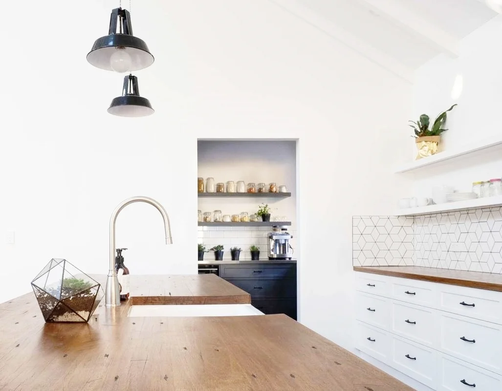 With Jamberoo being such a beautiful part of the world, it was worth every minute of the four hour drive South from Newcastle. Mitchell & Catherine worked hand in hand with Everlong Joinery in designing their dream Kitchen & Butlers Pantry, with Catherine showing her own creative flair and impeccable taste the brief was classic industrial-style & it was all in the detail. It is the Shaker style doors, the industrial pendant lights & the black freestanding oven that are the focal point in the kitchen along with the white hex tile with contrasting grout.
